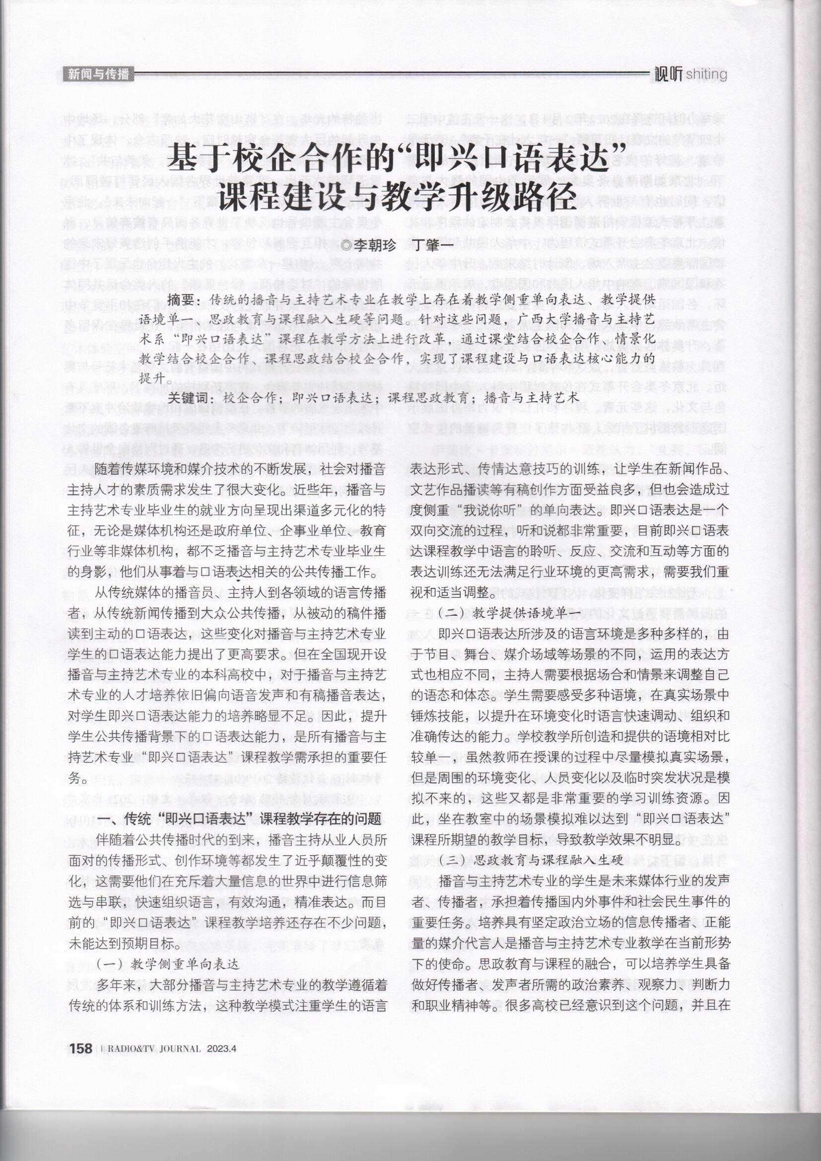 《基于校企合作的“即兴口语表达”课程建设与教学升级路径》 |