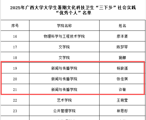 近日,2025年伟德国际1946大学生暑期文化科技卫生“三下乡”社会实践活动评优结果正式公布。经各学院团委、学生组织认真组织申报,校团委组织评审和论证,并经公示无异议后,评出优秀单位6个、优秀团队27个、优秀个人31名、优秀调研报告30篇。我院在本次评选中表现优秀,我院在集体项目和个人项目的评比中均有所斩获。