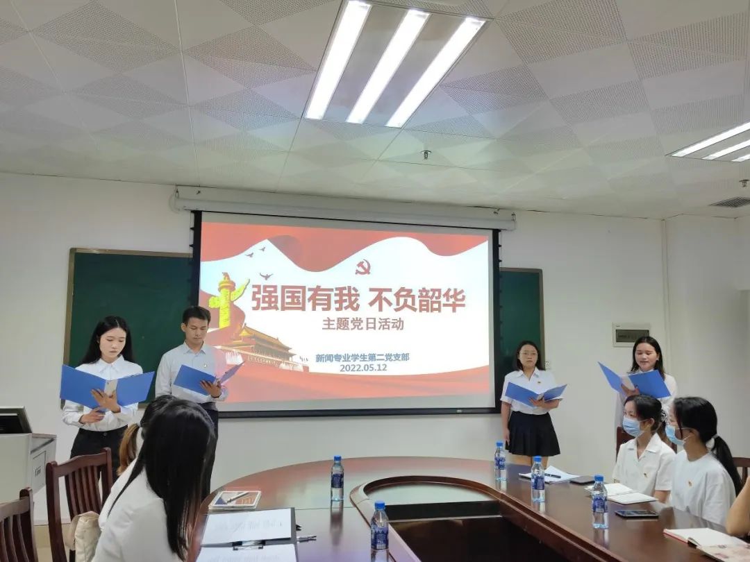 为进一步学习贯彻习近平总书记在庆祝中国共产主义青年团成立100周年大会上的重要讲话,传承和弘扬“爱国、进步、民主、科学”的五四精神,激励青年敢于担当、奋勇争先,5月12日晚,我院新闻专业学生第二党支部(以下简称“新闻二班党支部”)于学院209召开“强国有我 不负韶华”主题党日活动。