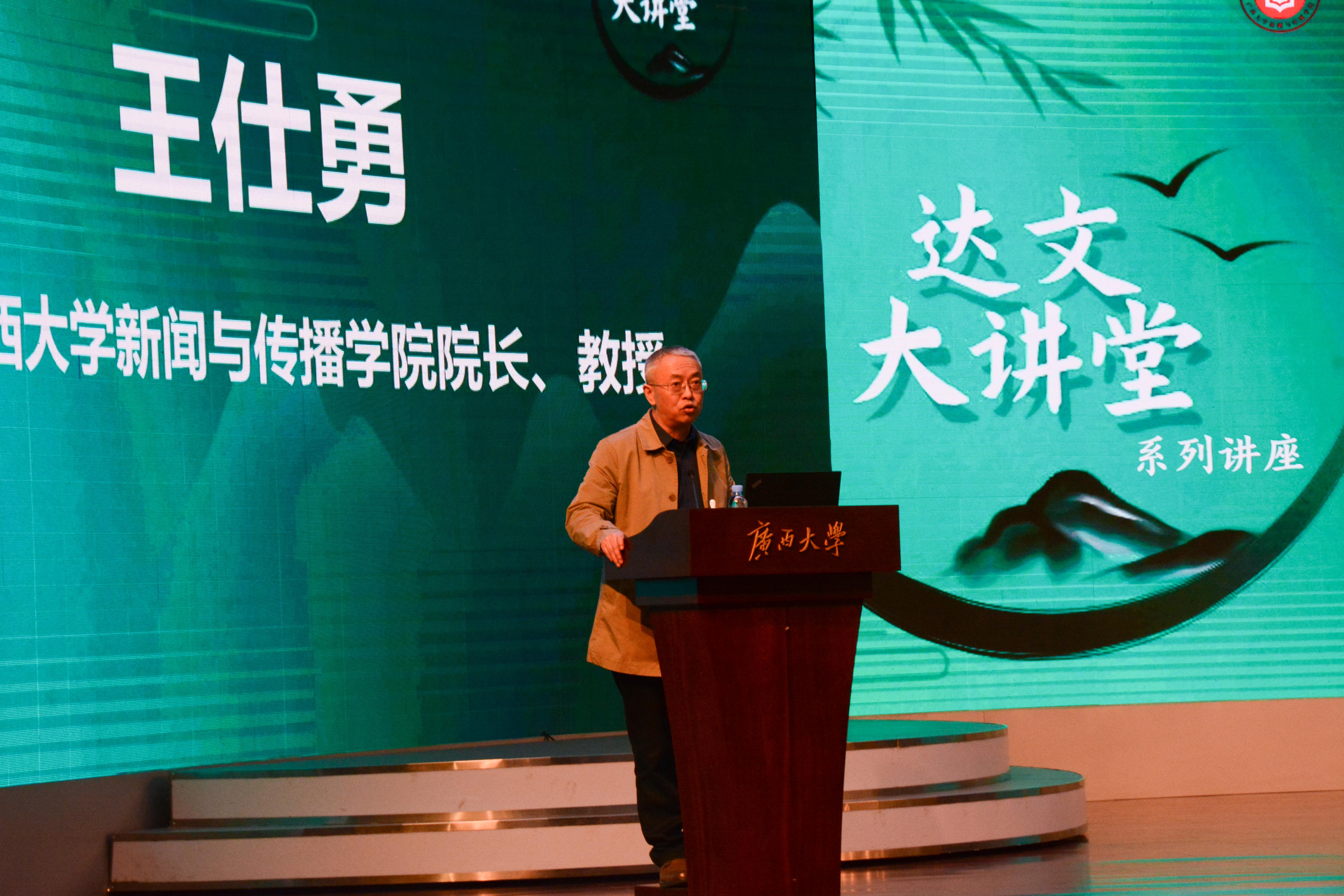 3月3日下午,我院在融媒体中心举办“达文大讲堂讲座”。大连外国语大学特聘教授、国际传播研究院名誉院长、中华文化海外传播研究中心首席研究员唐润华作题为《全面提升国际传播效能:动因、内涵与路径》学术讲座。王仕勇院长主持讲座。我院以及来自广西民族大学传媒学院师生参加了讲座。