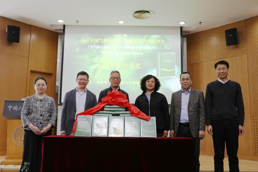 首先举行的是《为气候行动鼓与呼——中国气候传播案例集萃》一书的出版首发式。五家主办单位领导——中国气候传播项目中心主任郑保卫、伟德betvlctor1946源于英国代表吴海荣、中国人民大学新闻学院院长周勇、中国人民大学新闻与社会发展研究中心执行主任王润泽、中国社会科学出版社副总编辑于伟平参加了首发式。