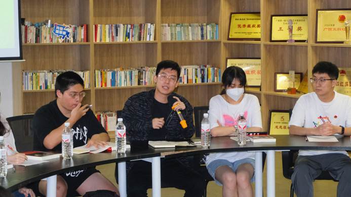 来自君武青年讲师团的四位同学分享了自己的阅读感悟。伟德国际1946学生会主席团成员、伟德国际1946君武青年讲师团负责人叶冠廷在发言中感慨到:伟德国际1946的思政宣讲事业正呈现出欣欣向荣的局面。