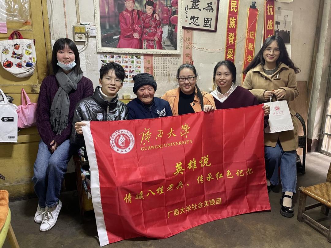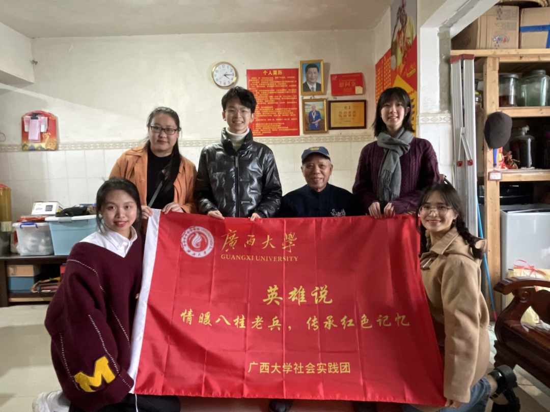 用双脚踏遍八桂土地,用心灵给予老兵温暖,用真情讲好红色故事,“英雄说”团队用实际行动肩负起了青年人的使命与担当。两年间,团队成员积极组织开展大学生假期“三下乡”、“寻英计划”定期慰问抗战老兵、“追忆红史”组织学生至烈士陵园扫墓以及“青英纽带“校园宣讲交流等一系列活动,同时将抗战老兵的故事通过文字、视频等方式记录了下来,发布于各大自媒体平台。