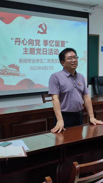此次主题党日活动以线上线下相结合的形式开展,新闻专业二班党支部全体党员参加,会议由党支部书记银健主持。