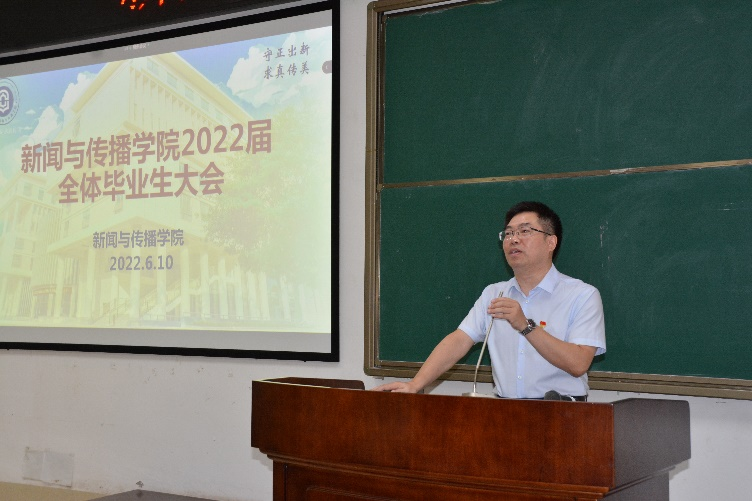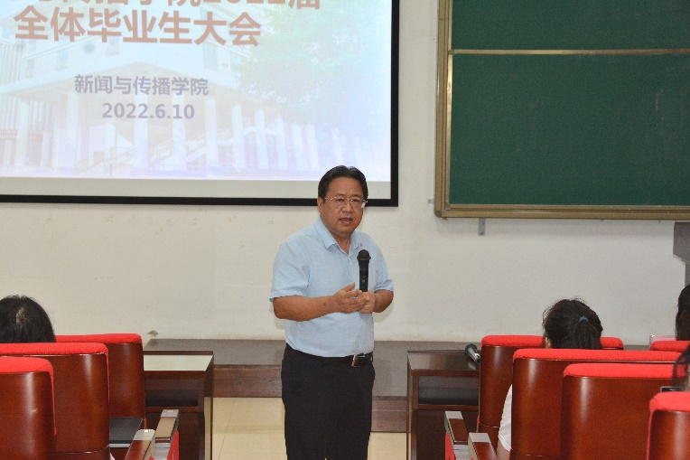会议伊始,唐兴书记围绕“大学四年学到了什么?”、“如何向就业单位推荐自己?”、“如何先就业,再择业?”三点向同学们分享自己的看法和经验,并与同学们进行互动。在向同学们提出 “学习新闻传播给你带来了什么?”的问题时,2019级专硕班鲍精华同学认为,学习新闻传播,让他学会观察的同时也提升了认知和分析能力,变得更认真也更有自信。最后,唐兴书记对全体毕业生们提出建议,希望同学们在就业时要有自己的判断,找准自己的定位,并预祝全体毕业生前程似锦。