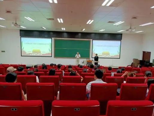 为深入推进党史学习教育常态化长效化,喜迎二十大、永远跟党走、奋进新征程,加强团员青年思想政治教育,引导广大团员青年厚植爱党、爱国、爱社会主义情怀和爱校荣校情感,团结引领广大团员青年坚定跟党走、建功新时代,从而为实现第二个百年奋斗目标、实现中华民族伟大复兴的中国梦凝聚起强大青春力量。5月10日下午,学院组织我院50多名入党积极分子聆听了物理学院退休老共产党员阳兆祥教授讲述的一堂生动的以“红色基因薪火相传 红色精神生生不息”为主题的党课。