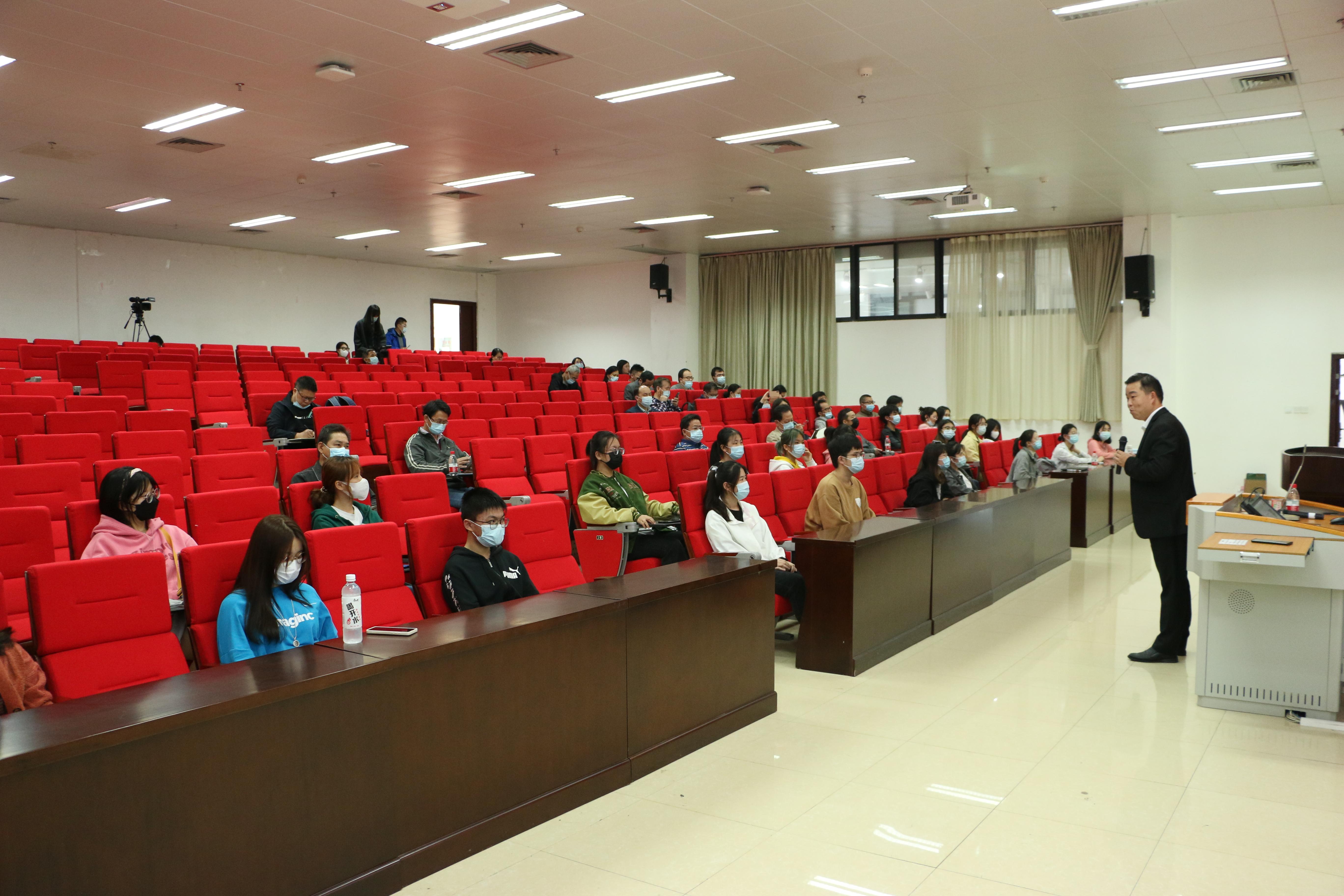 学院党委书记唐兴老师在课后代表学院向高老师表示感谢,希望有机会能再次合作,本次课堂在师生热烈的掌声中圆满结束。(新闻212班 潘越)