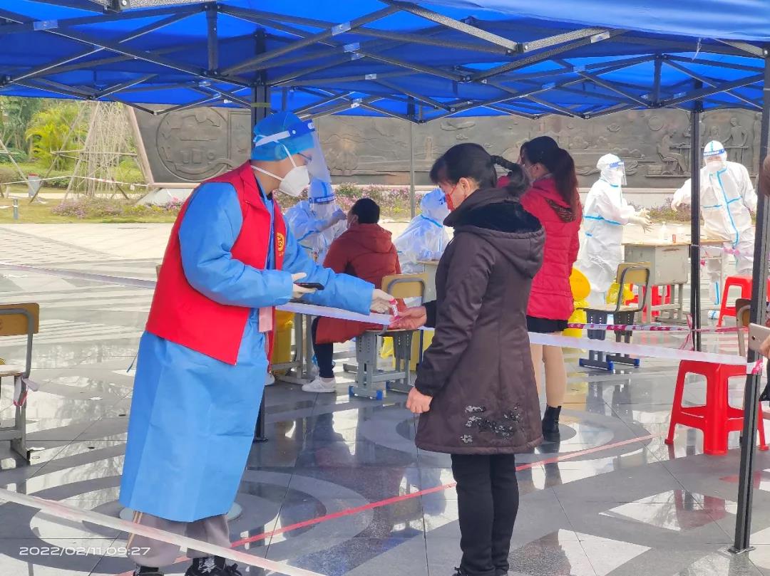 参加抗疫感想: 2月4日,广西百色德保县突然查出一例阳性病例,接下来几天,疫情在广西迅速蔓延,直至今日,已经累计确诊227例。2月7日上午7时30分,百色市全员居家隔离,全市“不进不出”,我所在的太平社区,有许多党员同志组成先锋队,积极投身于核酸检测志愿者队伍等外出服务队伍中。2月11日上午7时,社区接到命令,需要8名志愿者紧急支援园博园核酸检测点,疫情就是命令,我们以最快速度集结,前往支援。戴上防护服,防护帽,我第一次与医护人员站在前线,有些许紧张;但想到与他们共同奋斗,心里便不再惧怕。正是由于每一个人:无论是到前线中或者去值守,又或者居家自我隔离,都是对百色市疫情的好转,带来希望。这几天广西各市医疗队、物资,都来支援百色市。钟南山院士的团队也专程赶赴德保县进行防控疫情的统一规划,统一部署,更坚定了我们打赢这一场疫情防控阻击战的决心,相信在我们共同努力下,拨云见日的一天终会到来。