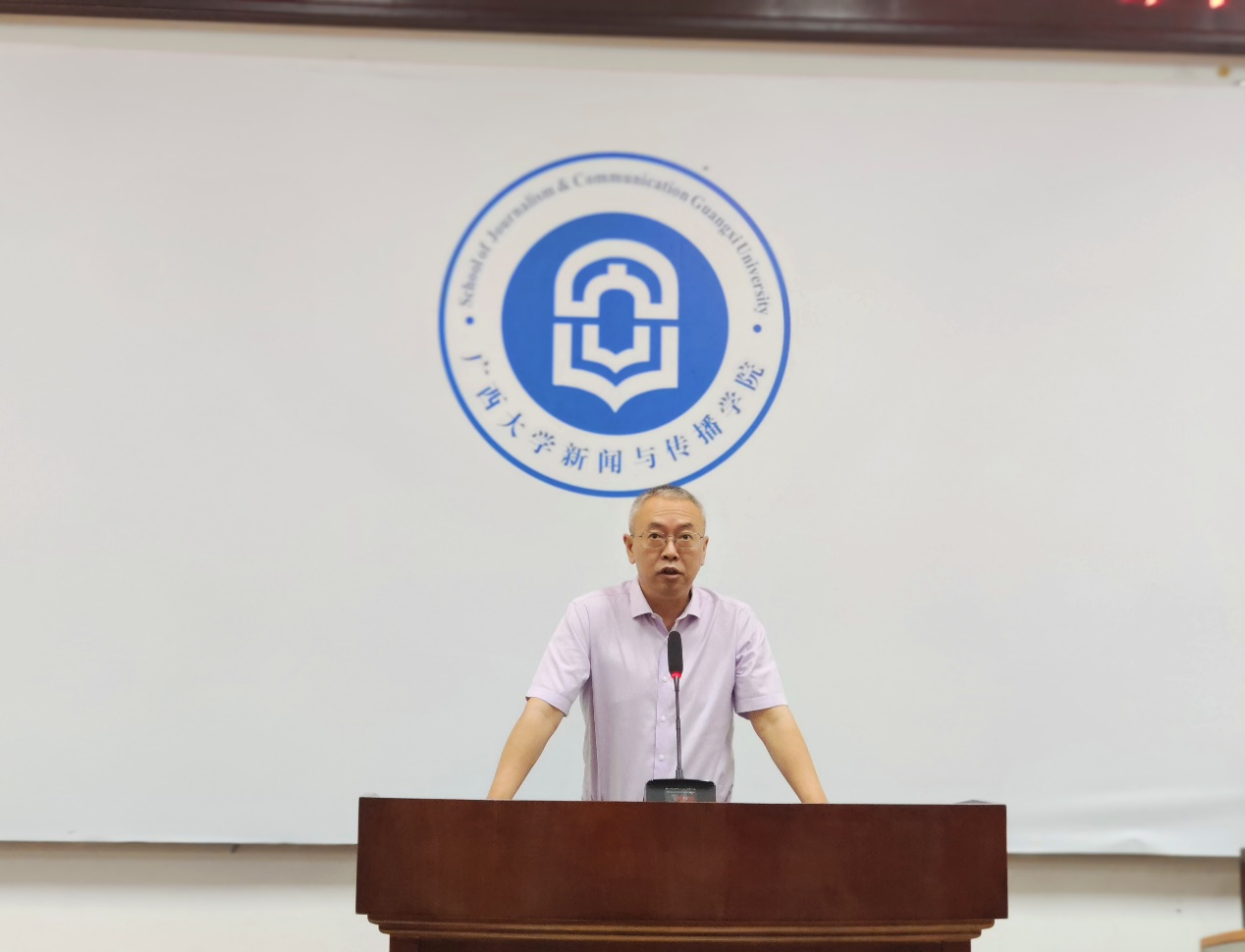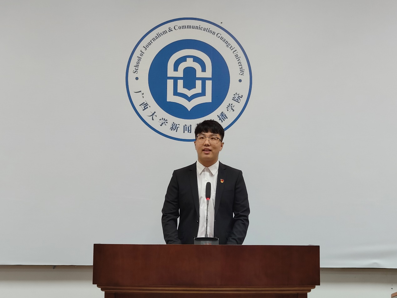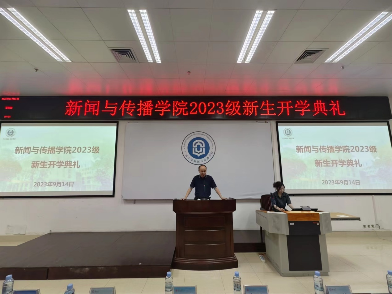 教师代表徐增展致辞,并热烈欢迎2023级新生加入充满挑战和机遇的新闻学大家庭,他表示,同学们将肩负起信息传播、传递真理、守护公正的责任。在未来的学习里,鼓励大家保持对知识的好奇心和对真理的追求心,把握时代脉搏,善于利用新媒体工具,培养传统性的理论素养和现代性的技术能力,同时始终坚持新闻人的道德操守,保持对社会的热爱,相信同学们在未来的求职路上一定能够实现自我价值,为社会做出贡献,对未来充满希望。