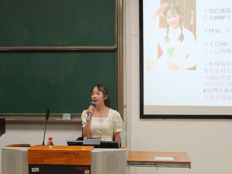 陆雪雯同学建议大家积极参加社会实践,因为作为新闻专业的学生,实践非常重要。她结合自身实践经历向大家介绍了社会实践的具体情形,分享了她的所见所感。她建议大家“走出课堂,走入祖国大地,把个人发展同国家的前途命运紧密联系在一起”,这个过程中“能够认识新朋友,拓展新视野,增强综合能力”。最后她希望大家能够好好珍惜时光,努力提升专业技能。