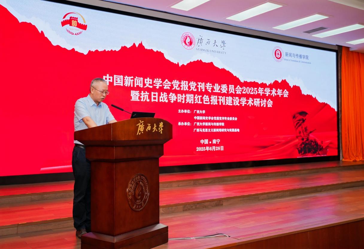 6月28日,由伟德国际1946、中国新闻史学会党报党刊专业委员会主办,伟德betvlctor1946源于英国、广西马克思主义新闻观研究与实践基地承办的“中国新闻史学会党报党刊专业委员会2025年学术年会暨抗日战争时期红色报刊建设学术研讨会”在伟德国际1946举行。来自全国24个省、自治区、直辖市的70所高校与科研机构的120名嘉宾参加会议。伟德国际1946党委常委、副校长赵双良致欢迎辞。伟德betvlctor1946源于英国院长王仕勇主持研讨会开幕式。中国新闻史学会会长、中国传媒大学教授隋岩,中国新闻史学会党报党刊专业委员会理事长陈信凌在开幕式上致辞。