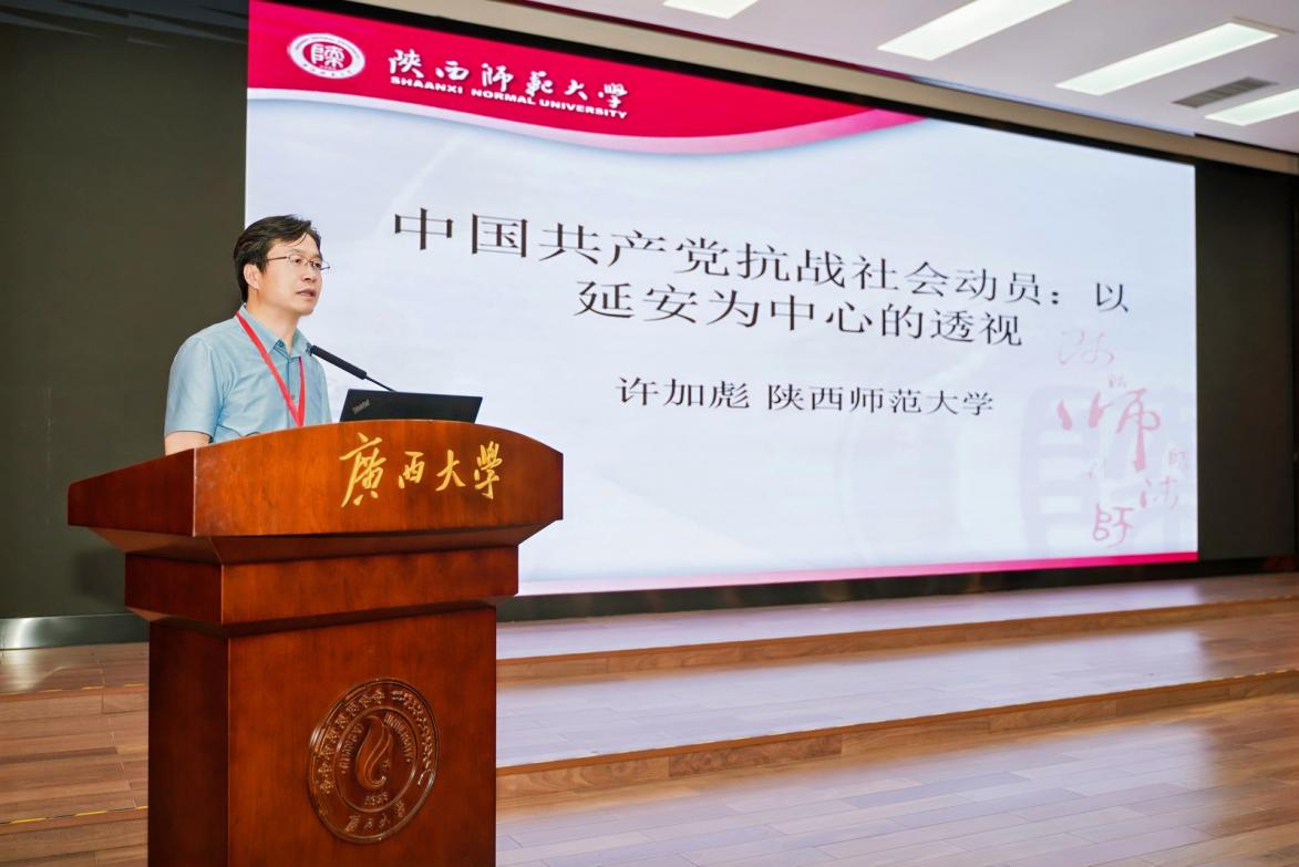 陕西师范大学伟德betvlctor1946源于英国教授许加彪作题为《中国共产党抗战社会动员:以延安为中心的考察》的报告。他指出,延安时期,中国共产党充分利用如报纸、杂志、广播等多种媒介形式,构建了全方位的媒体动员体系,通过边界激活、社会启蒙和恐惧诉求等策略,有效地提升了民众的抗战意识。他还强调了媒介在地化改造和物尽其用理念的重要性,展示了社会动员在团结民众、鼓舞士气、推动抗战胜利方面的重要作用。