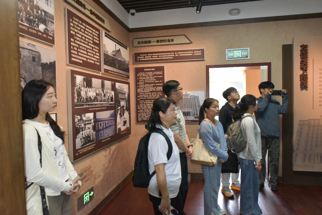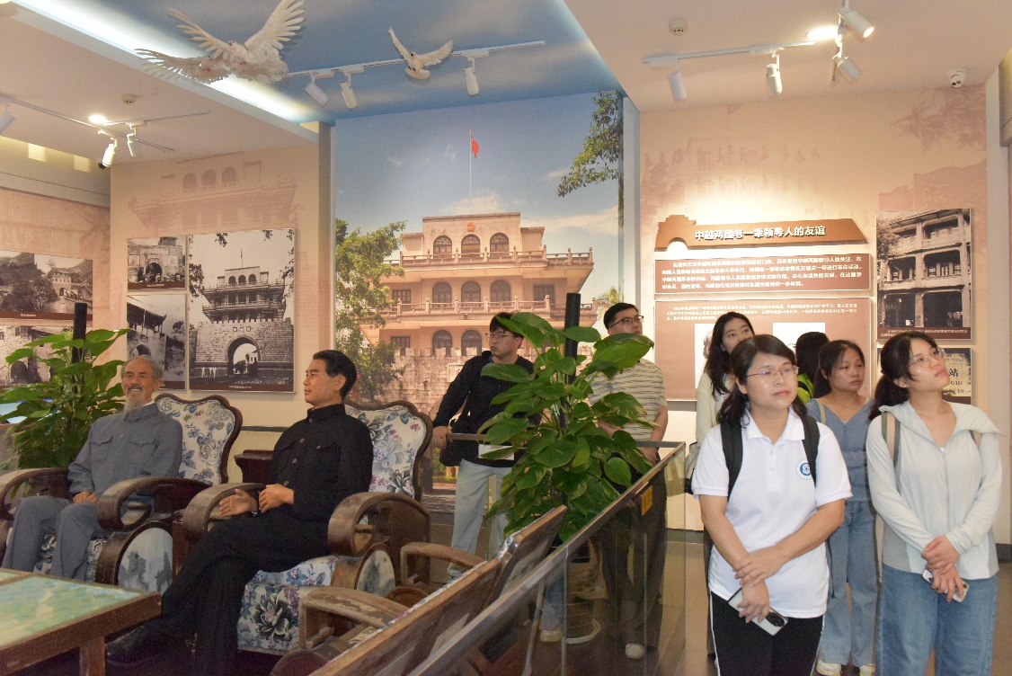 在友谊关智慧口岸货运通道,智能化查验设备高效运转,日均通关流量数据背后,是“智慧赋能物流”的生动实践;法式楼(广西全边对汛署)的历史陈列中,胡志明时期中越友好合作的故事被重新讲述,古关楼的青砖黛瓦间,沉淀着两国交往的深厚底蕴。沿边境线漫步时,界碑旁中越建筑风格的差异对比,更让队员们体会到“和而不同”的边境治理智慧。