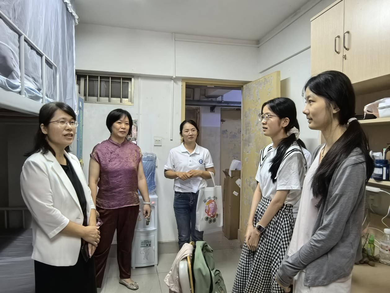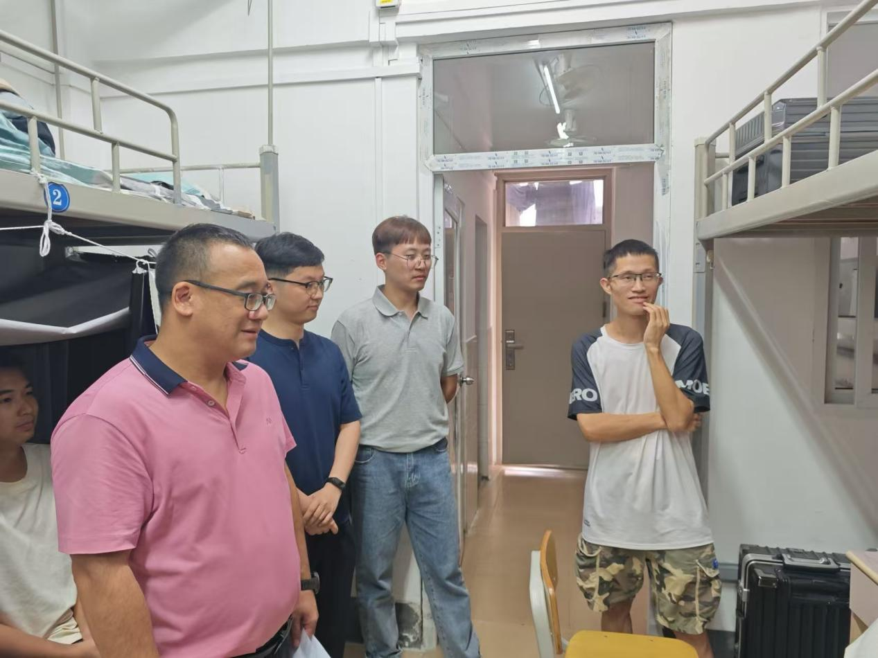 9月14日下午,学院领导班子全体成员、新生班主任、全体辅导员及班助分组走进西11栋、东20栋、西23栋、西19栋学生宿舍,走访我院2025级本科与研究生新生,为新同学们送去问候与关怀。