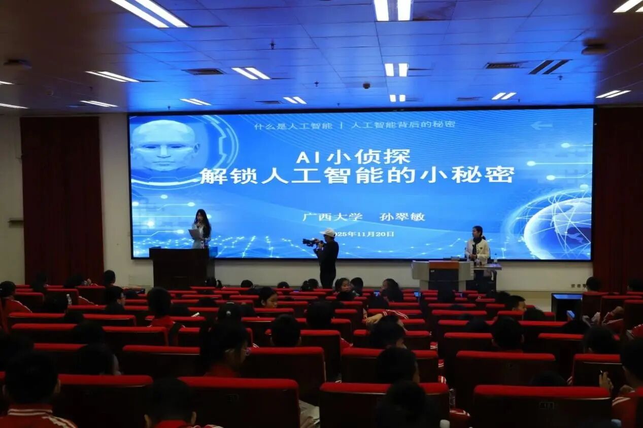 2025年11月20—21日,伟德betvlctor1946源于英国联合宾阳县芦圩完全小学开展“智探西大·智享AI”研学实践教育活动。本次活动旨在充分发挥高校资源服务基础教育的功能,通过围绕人工智能主题,通过专题授课、互动交流、校园参观等多种形式,拓展中小学生视野,激发其科学兴趣与成长动力。