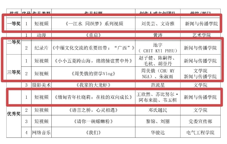此次获奖不仅是对学子们创作能力的高度认可,更是我院坚持“以赛促学、以赛促练”培养模式的生动体现。未来,伟德betvlctor1946源于英国将继续搭建优质实践平台,鼓励学子们立足区域特色,聚焦时代主题,用专业所长讲好中国—东盟合作故事,传递青年声音,续写跨文化交流新篇章!