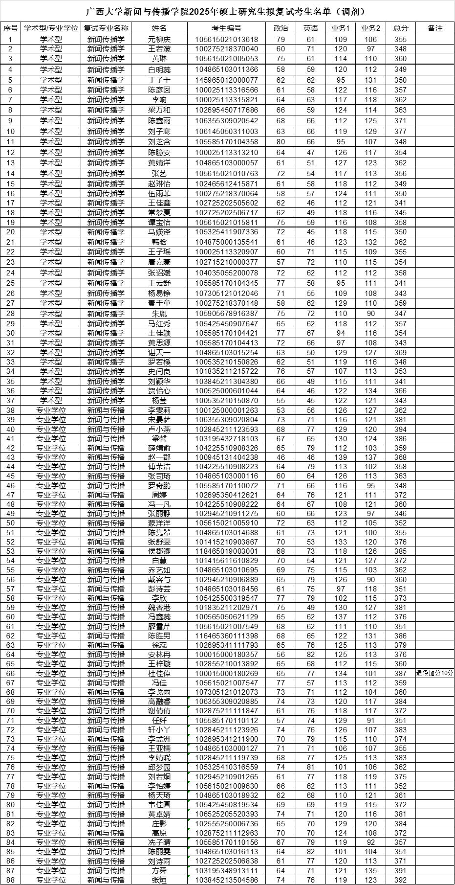 学院根据《伟德betvlctor1946源于英国2025年硕士研究生招生复试实施细则》中的调剂基本条件,对申请同一专业、初试科目完全相同的调剂考生,按考生初试成绩择优遴选,现公布我院新闻传播学、新闻与传播调剂考生进入复试的名单。名单如下: