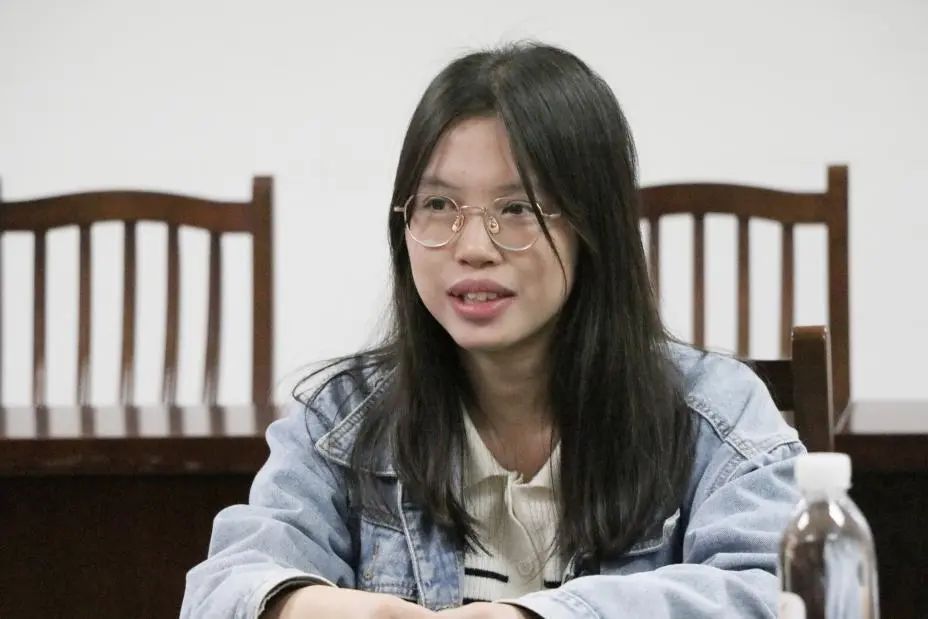 蒋珊珊校友结合自身在南宁市武鸣区城厢镇人民政府的工作经历,讲述了工作的繁忙与充实。她谈到,在学院进行党建工作锻炼让她很快适应了工作岗位,使她在专业上得到认可。蒋珊珊校友还分享了她在基层工作中的点滴,如参与土地整治、脱贫攻坚监测等工作。她强调,尽管在工作上遇到了诸多挑战,但作为党员,每当看到群众生活得到改善时,都深感自己的工作意义非凡。