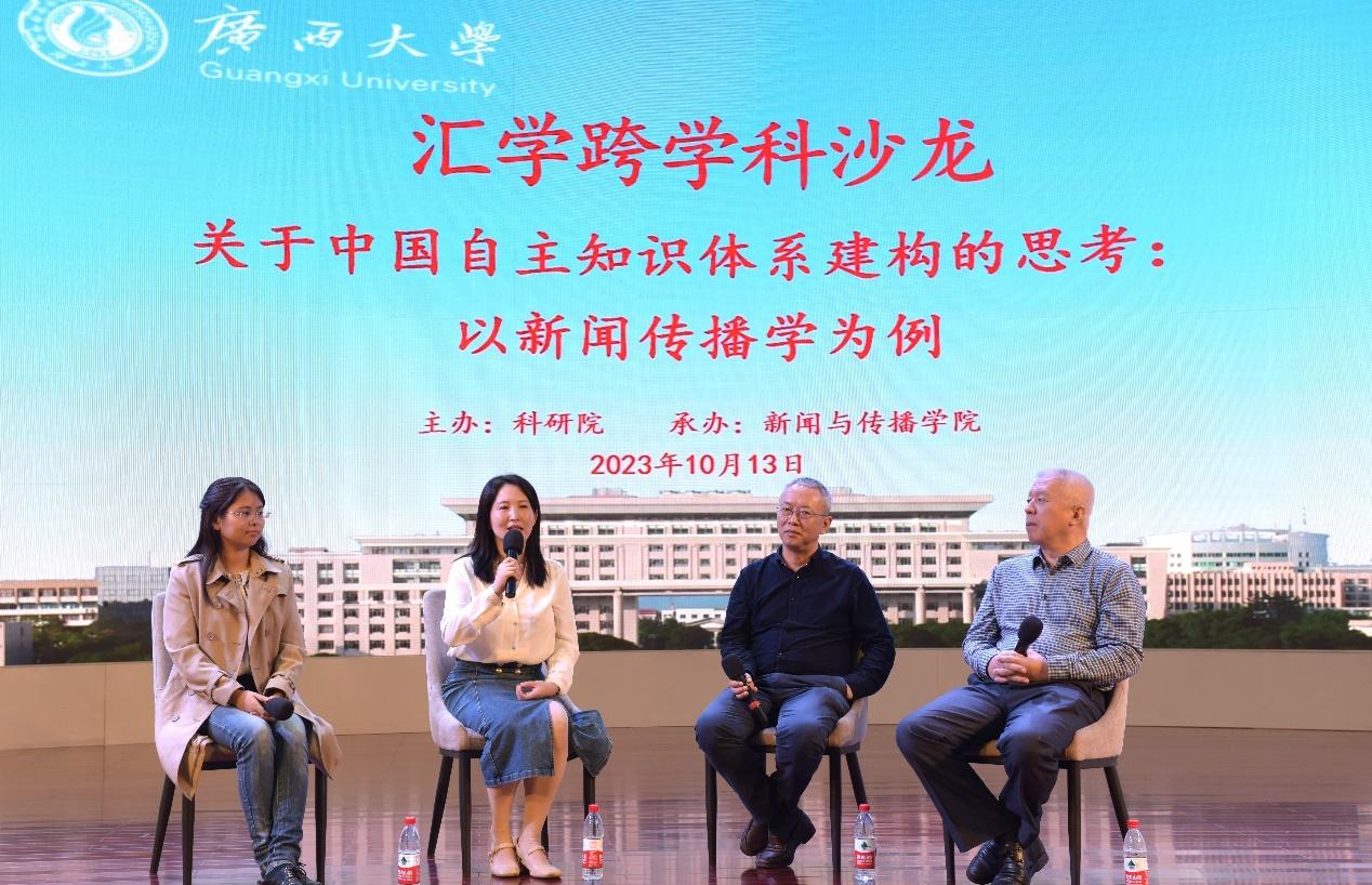 活动现场,不同学科领域的老师进行学术交流。艺术学院副院长欧阳宜文就国际音乐交流在我国面向东盟国家话语中的功能研究和定性比较分析(QCA)视角下的广西壮族音乐传播研究两个案例向大家分享了她对新闻传播学与音乐研究相结合的一些尝试。