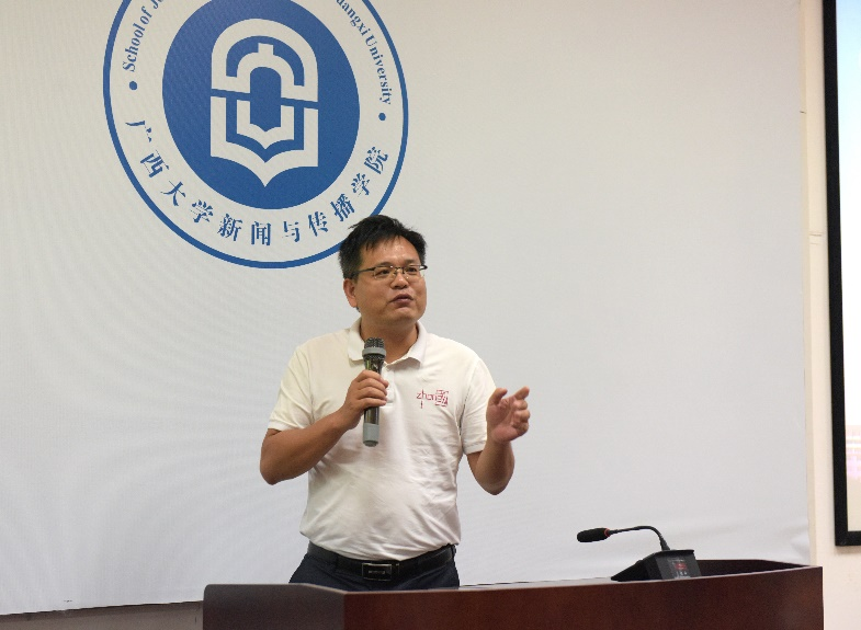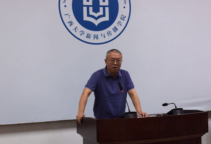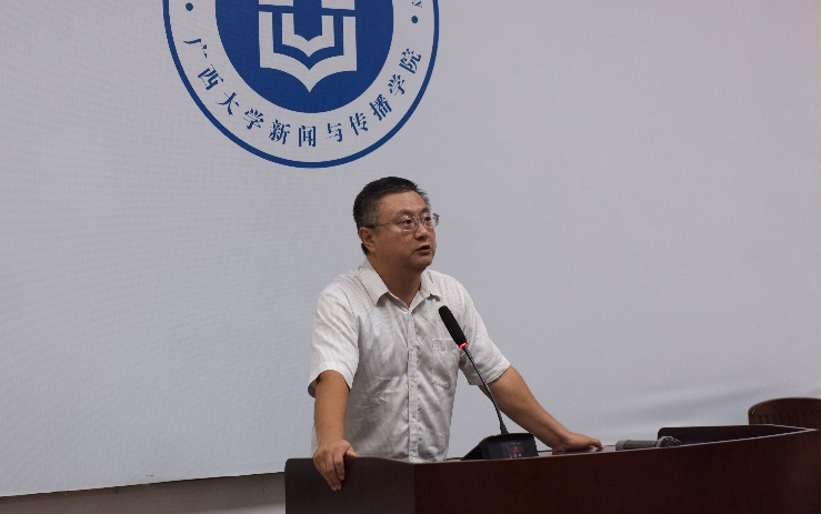 王仕勇院长讲话,他表示新闻传播学科是需要跨学科知识的学科,新闻工作者在实际工作中,对于跨专业的相关报道国际传播等内容都需要拥有一定的知识储备。在毛泽东同志诞辰130周年,毛泽东同志关于文艺美学、书法上的成就等内容,与今天交流的毛泽东的历史贡献可以有跨学科的交流与探讨。同时王仕勇院长提到,我国是中国共产党领导下的社会主义国家,党的发展和宣传工作都需要新闻传播。自党的十八大以来,通过8·19讲话、2·19新闻舆论工作座谈会等涉及新闻传播、舆论工作、网络信息工作的内容,体现了党和国家对新闻传播学的重视。