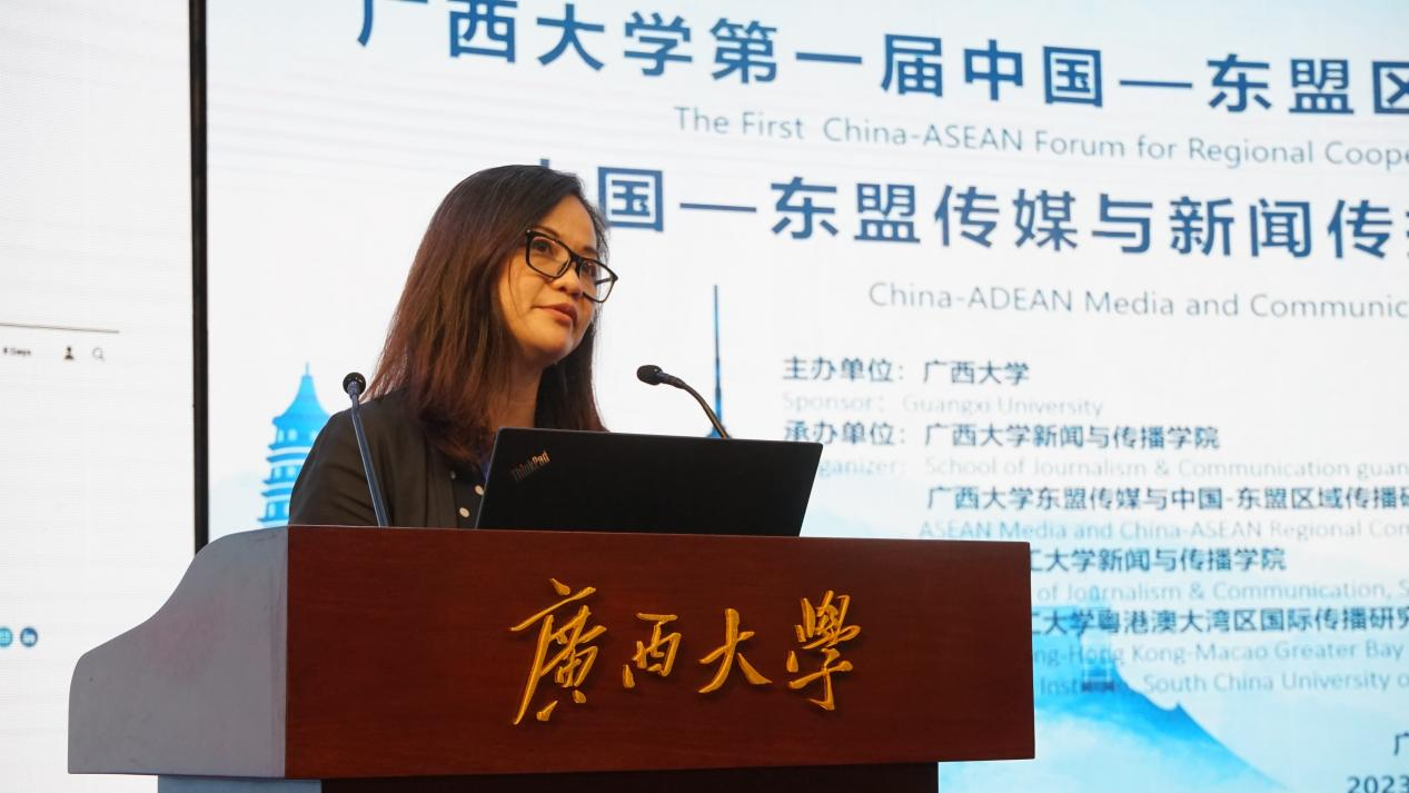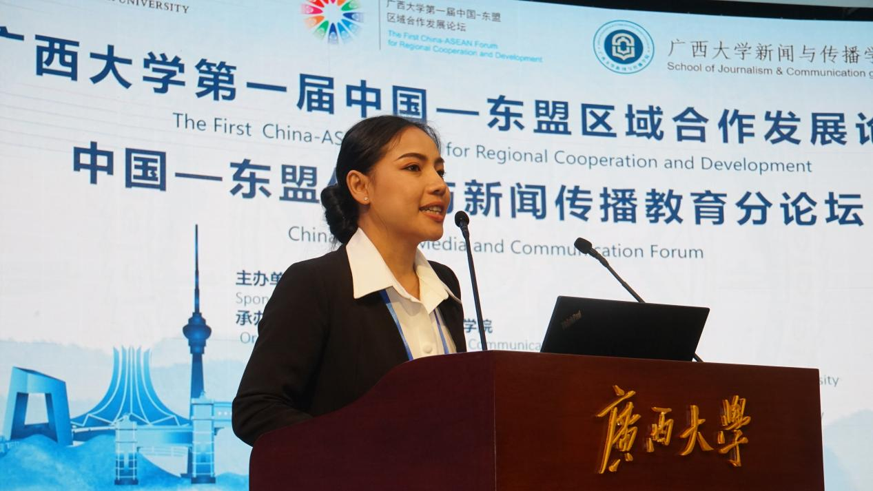 老挝国立大学语言学院大众传播系副主任苏欣作题为《如何应对新媒体给新闻与传播教育带来的挑战:老挝国立大学大众传播专业的改革实践》的报告。她介绍了老挝国立大学大众传播系的发展历程、课程设置情况及教学成果。针对新媒体平台兴起对人才培养产生的影响,她认为高校有必要调整课程安排和教学方法,让学生掌握必要的新闻传播技能和专业知识,以帮助学生适应不断变化的新媒体环境。