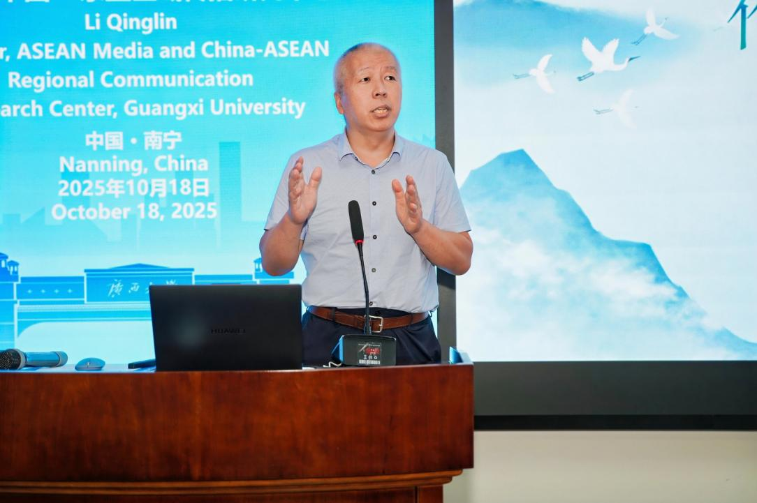 伟德国际1946东盟传媒与中国—东盟区域传播研究中心主任李庆林作题为《人工智能时代讲好东南亚故事的机遇和挑战》的报告。他以自身的经历,分享了对东南亚的记忆,回顾了中国—东盟的友谊历史和传播案例。他提出了人工智能等新传播技术在叙事方面的助力与隐忧,希望借助新传播技术,在新时代讲好东南亚故事。
