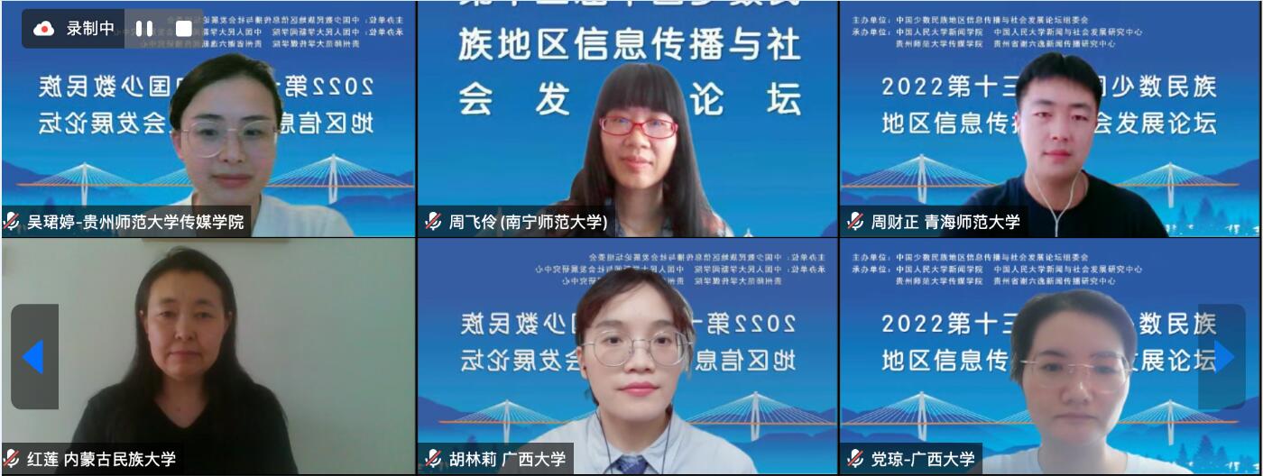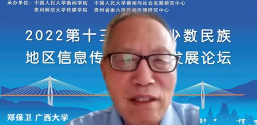 7月22日,第十三届中国少数民族地区信息传播与社会发展论坛以线上会议方式在贵州师范大学传媒学院举行。伟德国际1946特聘君武荣誉教授、中国少数民族地区信息传播与社会发展论坛荣誉理事长郑保卫,党琼助理教授以及硕士研究生胡林莉、王子璇参加了论坛并作学术发言。