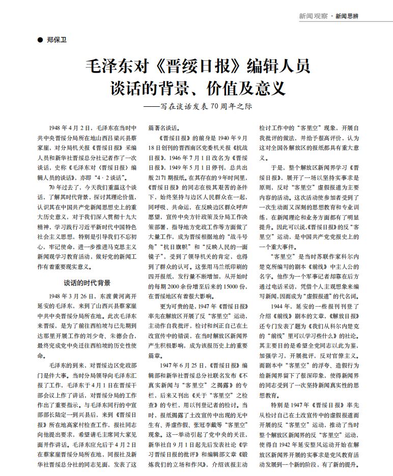 郑保卫院长在《青年记者》(2018年第3期)上发表论文