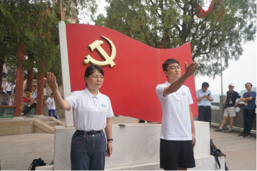 “红色新闻溯源之行”团队在宝塔山举行了“重温入党誓词”活动,易文老师和本科18级李航同学共同朗诵了贺敬之的《回延安》。随后,师生们一起合唱《我和我的祖国》。