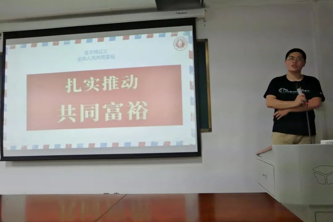 来自马克思主义学院2020级的研究生李想向在座同学分享了自己关于中国式现代化的想法。首先,他提出了两个问题:“什么是现代化?为什么说中国是现代化国家”,由此讲述了现代化道路的一般规律和中国式现代化与西方存在的不同之处。接着,李想同学向大家说明了中国式现代化的七个特征。他指出,我们国家的现代化是人口规模巨大的、传承弘扬优秀传统文化的、和平发展的现代化。中国式现代化始终坚持以中国共产党为领导核心,始终致力于全体人民共同富裕、物质和精神文明相协调、人与自然和谐共生。最后,他总结道,中国式现代化彰显了中国道路上的主体性与自我性,展现了中国道路的世界性意义和世界向度,中国正在走向世界并被世界上越来越多的国家和地区理解、认同,中国道路必将越走越宽广、越走越辉煌。