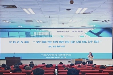 10月11日下午,张伟超老师在我院西报告厅为大一新生带来2025“大学生创新创业训练计划”实战解析讲座。讲座围绕项目意义、申报流程、选题指导等维度展开,旨在鼓励新生以实践结合理论,积极参与创新创业项目。