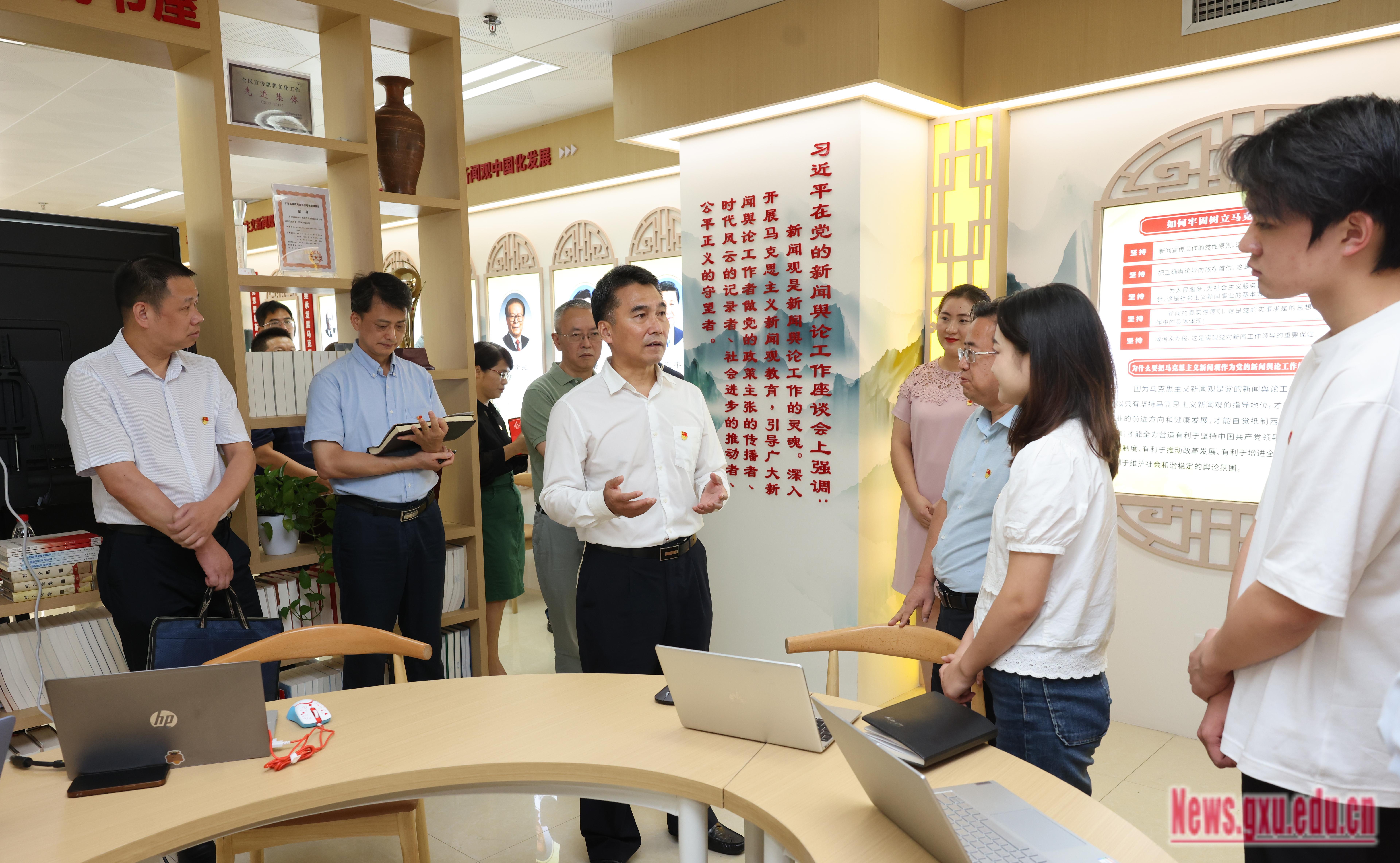 王乃学书记一行先后参观了伟德betvlctor1946源于英国“解忧纾困驿站”、为学生办实事实习联系平台、“中国式现代化”系列微党课录制现场,详细了解了伟德betvlctor1946源于英国党建线上线下运行流程。当看到学生在录制《黄文秀扶贫日记》有声书时,他希望伟德betvlctor1946源于英国发挥学科优势,结合中央和自治区重要时间节点,推出更多有感染力的、群众所期待的如有声书等项目和活动,在满足师生群众需求的基础上,使学生的思想和能力都得到进一步提升。