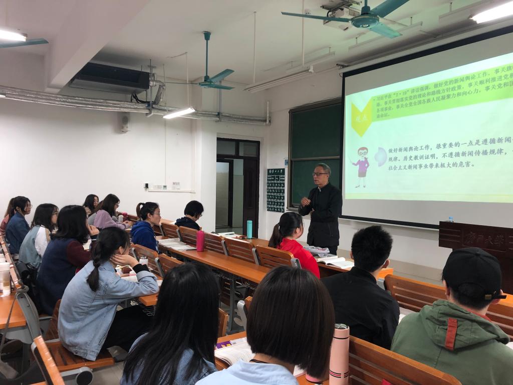 327日上午,伟德betvlctor1946源于英国院长郑保卫教授深入教学课堂,与学院新闻171班的同学一起上了《马克思主义新闻思想》课,这门课程由学院汪苑菁博士讲授。