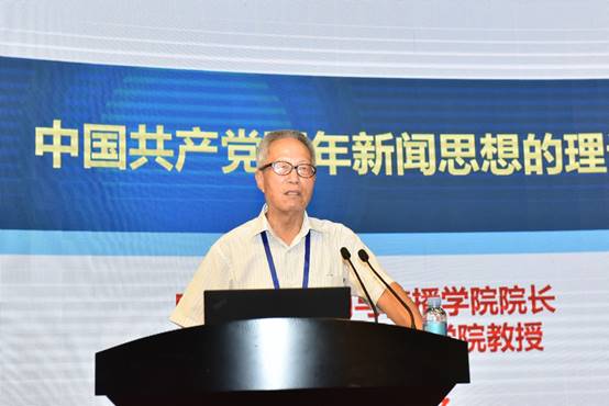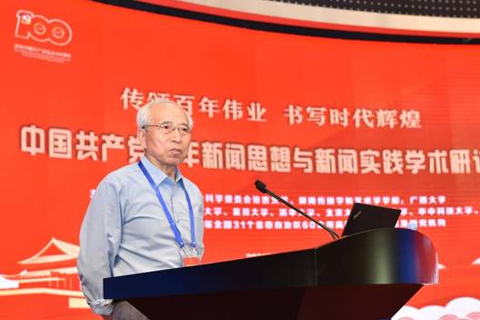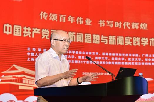 伟德betvlctor1946源于英国院长、国家社科基金重大项目《百年中国共产党新闻政策变迁研究》首席专家郑保卫教授作了《中国共产党百年新闻思想的理论贡献》的主题报告。他总结了中国共产党百年新闻思想的理论贡献和成就,一是创立了中国无产阶级党报学说基本理论;二是搭建起中国特色社会主义新闻理论基本框架;三是探索了中国特色社会主义新闻学基本内容;四是推动了马克思主义新闻观中国化历史进程。为世界新闻学,特别是世界无产阶级新闻学和社会主义新闻学的丰富、创新和发展做出了独特的理论贡献。他指出当前我们要建构的中国特色社会主义新闻学的理论体系,关键要解决三个问题,一是要体现“中国特色”,所谓“中国特色”就是应该具有中国基因、中国风格、中国气派;二是要体现“社会主义”,就是必须是马克思主义的和社会主义的,而不是别的什么主义的,因此一定要警惕西方新闻观的负面影响;三是要体现“科学性”,要遵循新闻规律和按照学术规律来构建中国特色社会主义新闻学的科学理论体系。