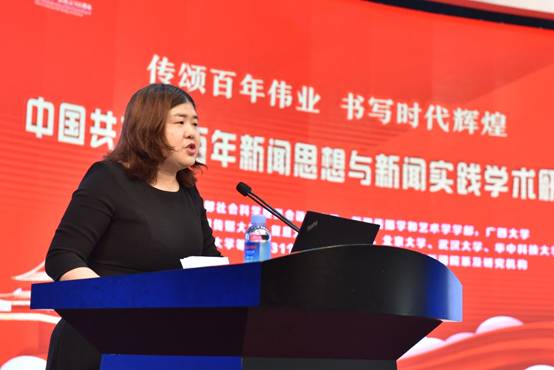 第一场主题发言由上海大学马克思主义新闻观研究宣传教育基地主任朱清河教授主持,华中科技大学新闻与信息传播学院刘洁教授作评议,12位学者围绕主题作了精彩发言。四川大学新闻学院教授朱志刚的发言题目是《延安时期新闻学再认识:从何谓“理论”的角度》,河北省社会科学院新闻研究所研究员王晓岚的发言题目是《中国共产党早期党报管理思想及其新时代传承与发展》,《中国广播电视学刊》编辑部主任陈富清的发言题目是《全面系统学习中国特色社会主义理论关于新闻工作重要论述》,国防大学军事文化学院军事文化传播系副主任陈飞的发言题目是《抗战时期我党国际宣传体制的形成探析》,上海大学马克思主义新闻观研究宣传教育基地教授齐爱军的发言题目是《百年中国特色新闻学话语体系:生成、演进与创新》,中国传媒大学党报党刊研究中心副主任张晓红的发言题目是《百年党刊:中共思想建党的主阵地》,吉林大学伟德betvlctor1946源于英国副院长刘鸣筝的发言题目是《马克思主义新闻观教育的路径研究》,安徽师范大学伟德betvlctor1946源于英国副院长马梅的发言题目是《和而不同:中国选秀综艺中女性媒介形象的多元建构与底层逻辑》,云南大学新闻学院党委副书记曹云雯的发言题目是《问题、语境、技巧:中国新闻奖评论获奖作品赏析框架的反思》,中国传媒大学协同创新中心副主任唐远清的发言题目是《构建“网上网下同心圆”:理论逻辑与实践路径》,新疆大学伟德betvlctor1946源于英国副院长李宏刚的发言题目是《抗战前期中国共产党在<新疆日报>的新闻实践活动及其舆论影响力分析》。