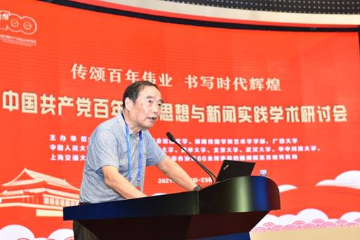 郑保卫院长在致辞中表示,回望历史,在长达一个世纪波澜壮阔的斗争历程中,中国共产党始终把新闻事业作为强大的“思想武器”和重要的“政治阵地”,用以传播文化,启蒙思想;宣传真理,唤起民众;组织斗争,抗击敌人;夺取政权,改造社会;发展经济,建设国家;推进改革,富民强国,始终在为民族解放、国家独立和人民翻身不懈奋斗,在为民族复兴、国家富强和人民幸福努力工作。他指出,在中国共产党成立100周年之际,总结中国共产党新闻事业百年来的光荣传统,概括百年中国共产党新闻思想的核心与精髓,揭示马克思主义新闻观在中国的形成发展过程,是献给党的百年华诞的最好礼物。
