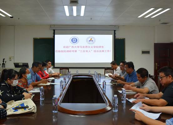11月4日,马克思主义学院党委书记周瑞超带领各师生党支部党员代表到我院开展“三全育人”综合改革为主题的交流学习活动。学院党委书记唐兴、副书记银健、专职组织员和师生党支部书记参加座谈交流。