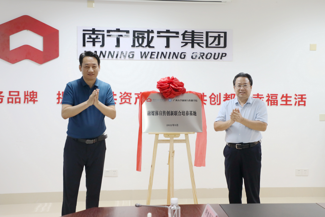 为加强校企合作,探索融媒体发展新模式,合力促进地方经济、教育事业的发展。5月30日下午,我院与南宁威宁集团举行共建融媒体宣传创新合作培养基地揭牌仪式暨座谈会。学院党委书记唐兴、党委副书记银健、团委书记刘梦娟、舆情研究中心负责人李凯,学生代表吴烨灵、朱磊、胡林莉、代姝玥参加会议。