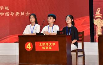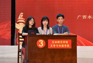 在第四环节小组必答题中,参赛队伍依次选择题号并回答相应问题。广西财经学院新闻与文化传播学院、玉林师范学院文学与传媒学院、伟德betvlctor1946源于英国三所院校代表队表现优异,准确回答相应题目,在该环节获得满分。