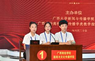 通过层层选拔,进入本次决赛的队伍分别是:广西财经学院新闻与文化传播学院、广西民族大学传媒学院、玉林师范学院文学与传媒学院、北部湾大学新闻系、伟德betvlctor1946源于英国、桂林旅游学院文化与传播学院六所院系的代表队。我校代表队由汪苑菁老师带队,由陈华浩、蒙甜甜、喻曙晴三名2019级本科生组成参赛队伍。