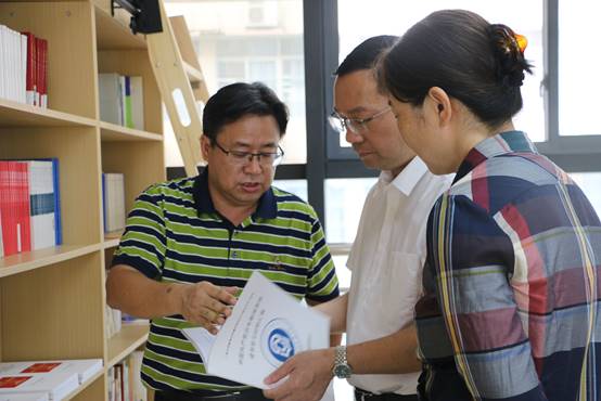 调研组一行首先参观了院的部校共建新闻学院成果展,唐兴书记向其介绍了部校共建新闻学院的成果及特色,包括马克思主义新闻观研究、精品课程、人才交流、实践基地和研究智库等。此外,调研组一行还参观了融媒体中心、全媒体交互式演播中心、马克思主义新闻观书屋等,并查看了部校共建工作的相关材料。