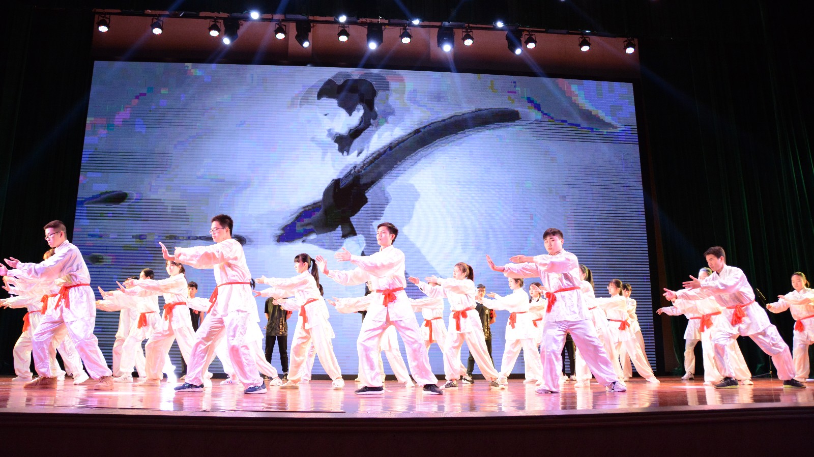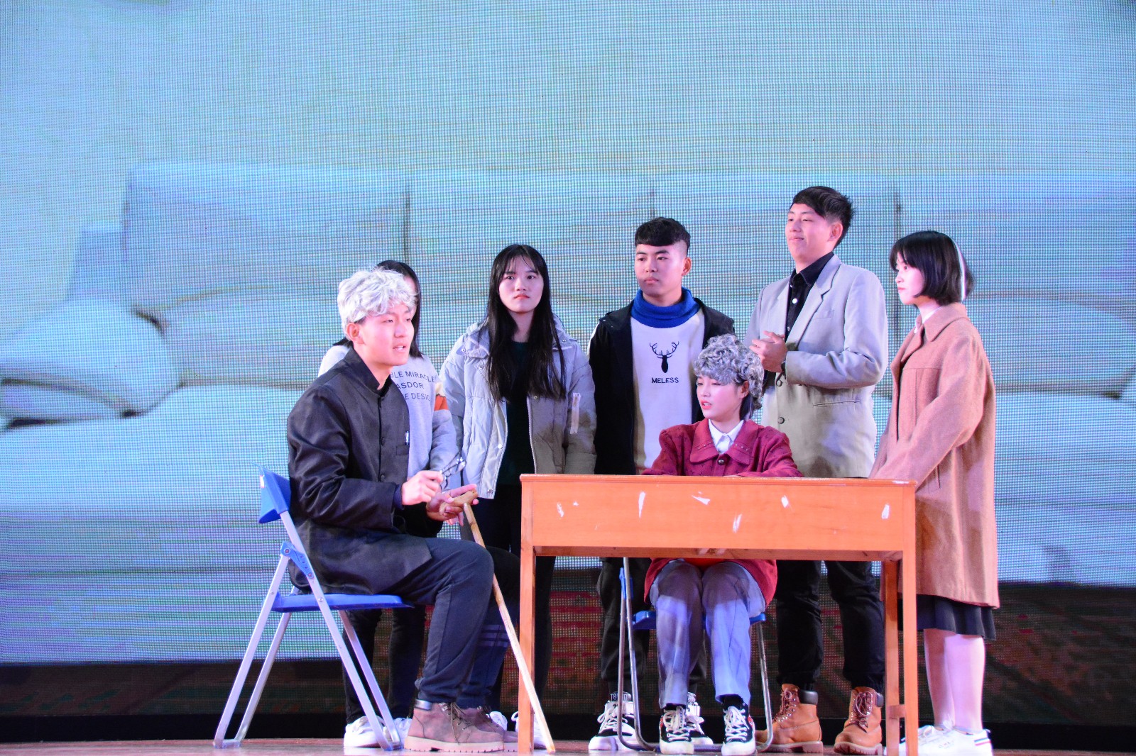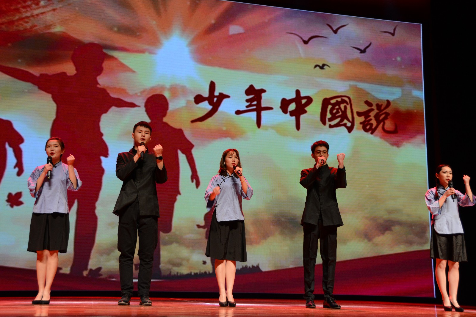晚会开始,学院舞蹈队用开场舞《HOLIODAY》为今晚的读书晚会拉开了序幕。充满活力的舞蹈将全场气氛带动起来。在第一篇章“书载千秋”,新闻172班用情景剧《党光辉下的一家人》讲述了几代人在党带领下创造幸福生活的故事。随后,17级专硕班的同学架起古筝,换上带有民族特色的服装,“十里桃,八桂情”,展示出不一样的青春风采。“五花马,千金裘。呼儿将出换美酒,与尔通销万古愁!”激昂的朗诵,一声声震撼着同学们的心。配合着灵动的音乐,新闻174班的同学们和武术协会为大家带来了武术操和诗朗诵《武之力,声之形》。