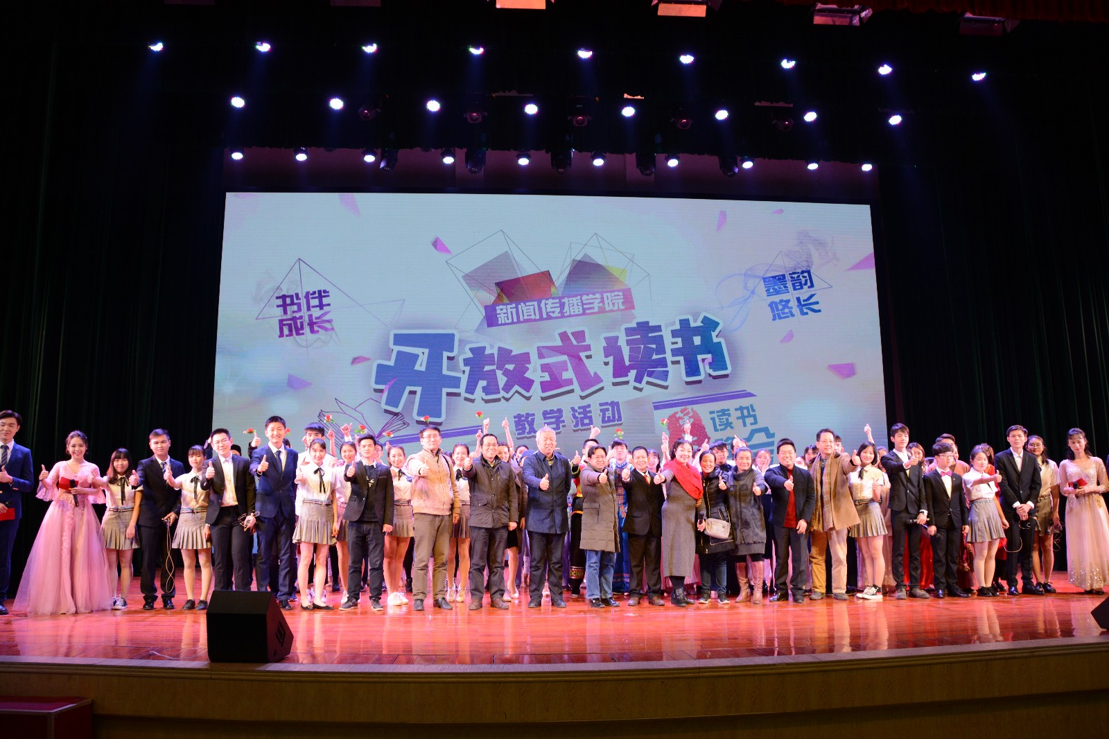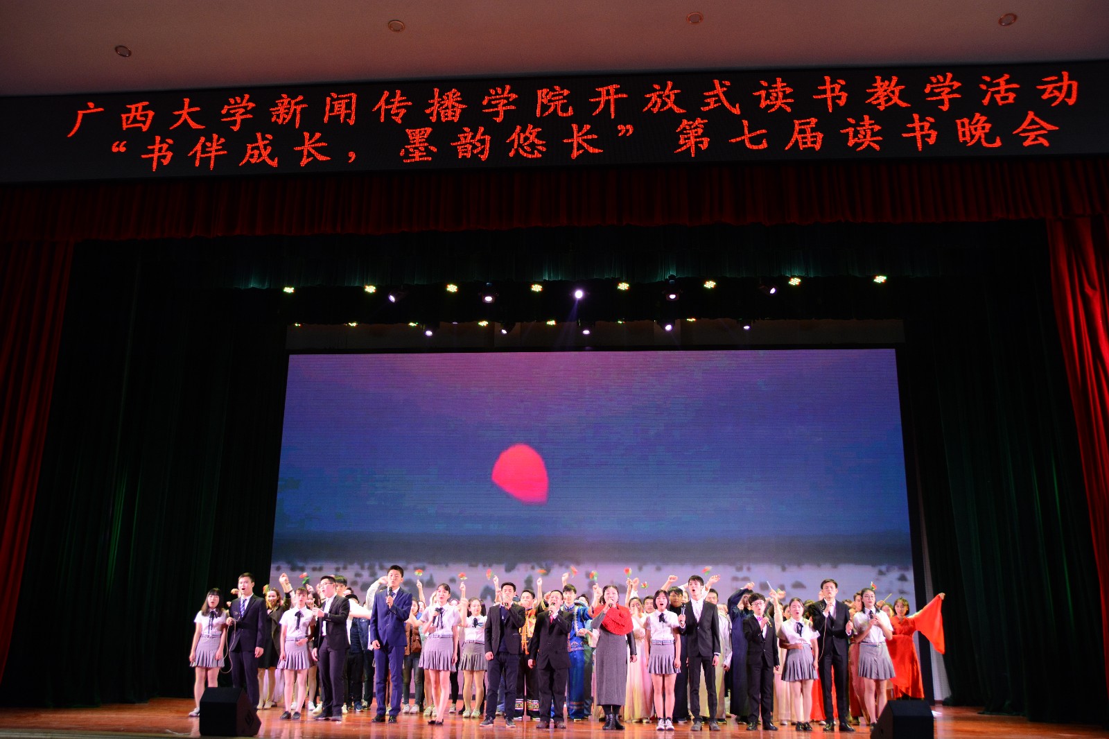 12月19日19时30分,伟德国际1946新闻传播学院开放式读书教学活动第七届“书伴成长,墨韵悠长”读书晚会在大礼堂举行。自治区党委宣传部张超、学校党委宣传部副部长谢能重、学校学生工作部(处)副部(处)长严壮锋、学院党委书记唐兴、常务副院长刘洪、学院党委副书记曾海艳、副院长银健、副院长李庆林、副院长吴海荣以及全院研究生、本科生参加了此次活动。