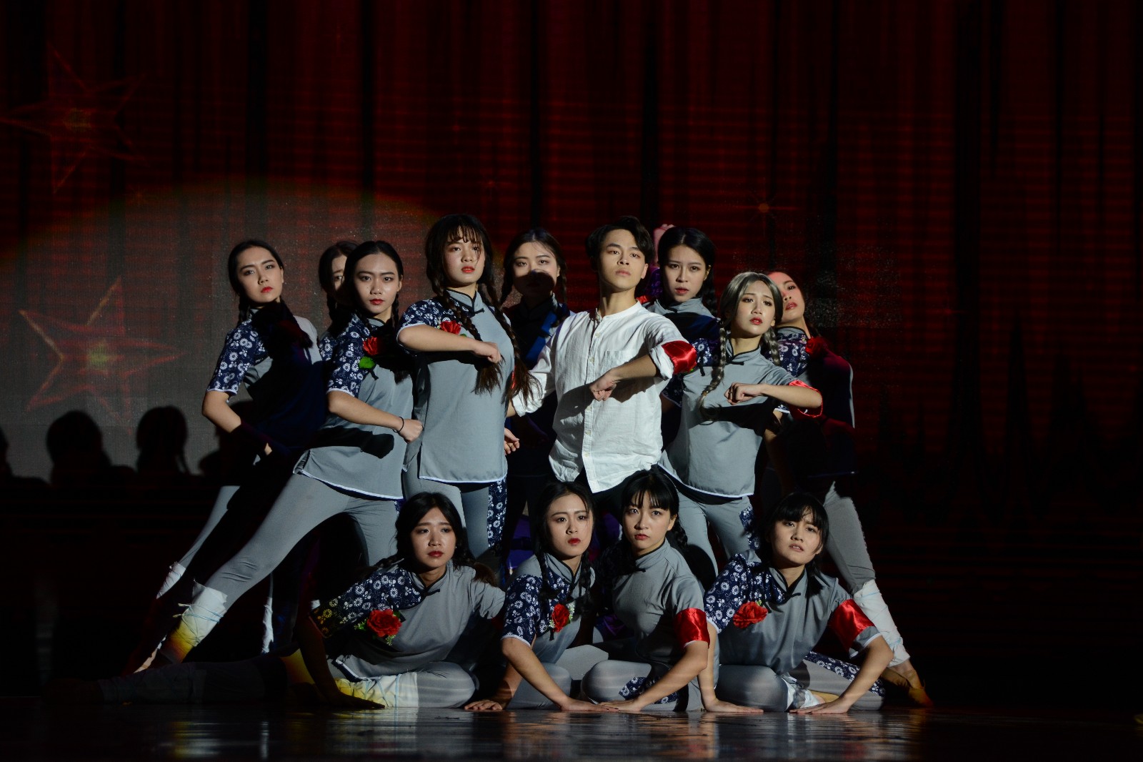 晚会的第三篇章“不忘初心”在研究生会的小品表演《青春中国梦》中开始,研究生们用小品讲述着自己在西大的生活——三五好友相聚,一起讨论自己阅读的书籍。时光正好,我们正青春。接下来,学院舞蹈队为大家带来舞蹈表演《映山红》。红色的背景幕布上闪耀着金色的五角星,台下的同学们看着舞蹈演员的一个个动作,心也随之陷入时而激动、时而悲壮的情感之中。