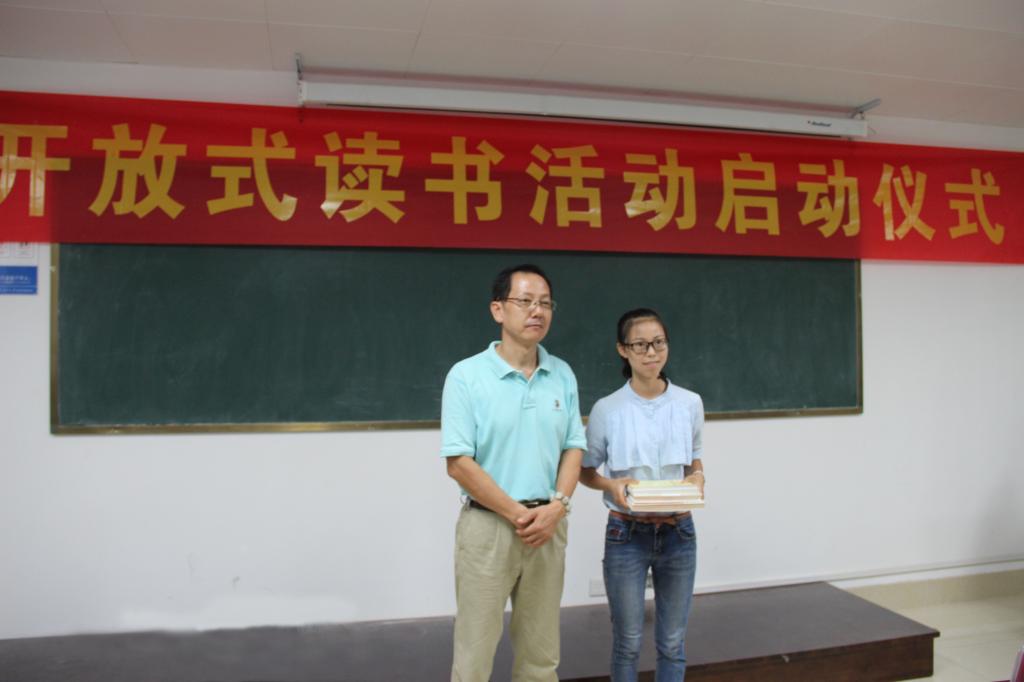 紧接着,刘洪老师在现场为15、16级的学生代表发放了本次读书教学活动的重点阅读书籍,并鼓励同学们多多阅读。