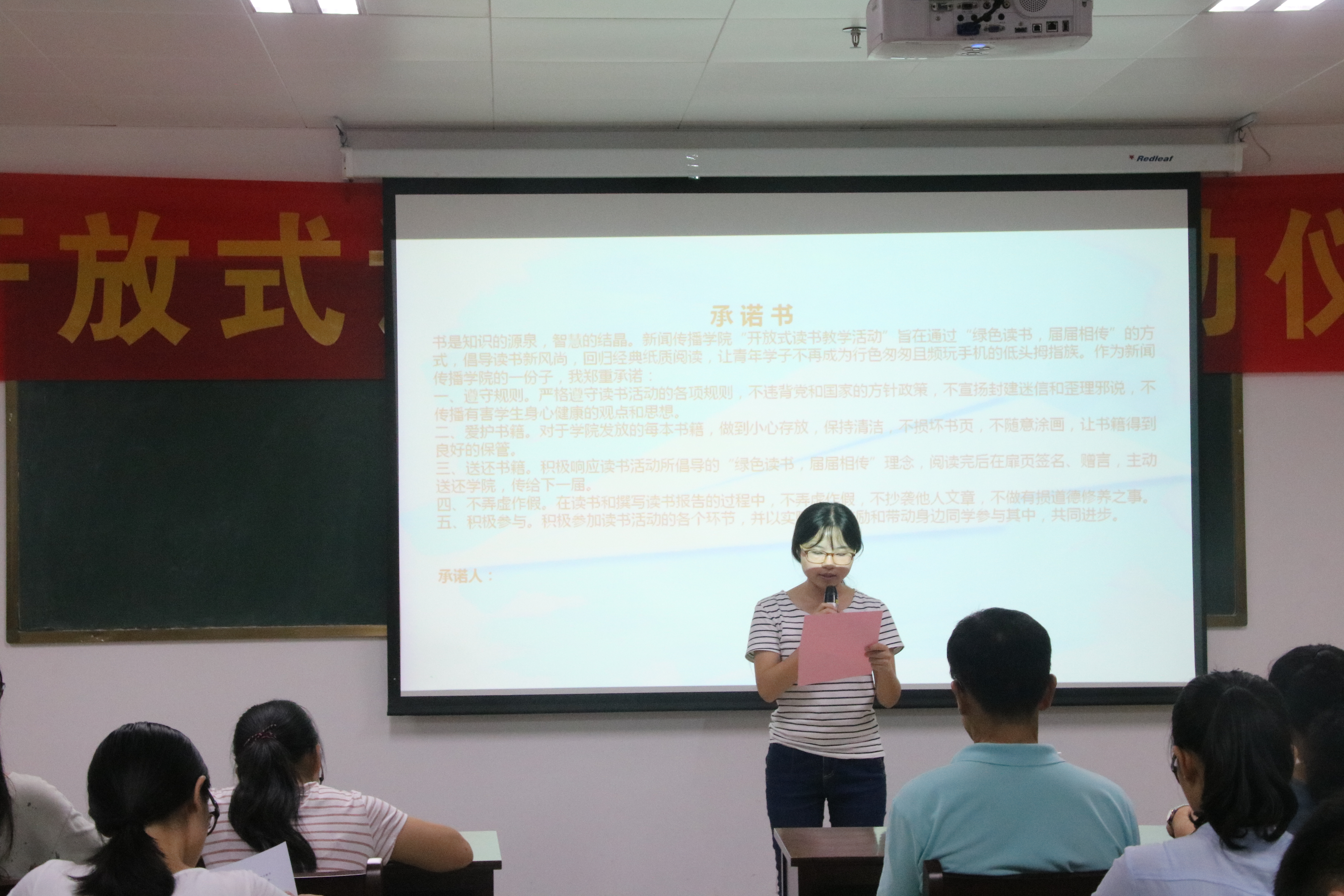9月28日下午5时30分,开放式读书教学活动启动仪式于伟德国际1946新闻传播学院510教室举行。我院常务副院长刘洪老师、党委副书记曾海艳老师、团委书记雷圆媛老师、团委副书记吴欣慧老师、辅导员刘诚老师出席了本次活动,我院学生会、研究生会以及各班级学生代表参与了此次活动。