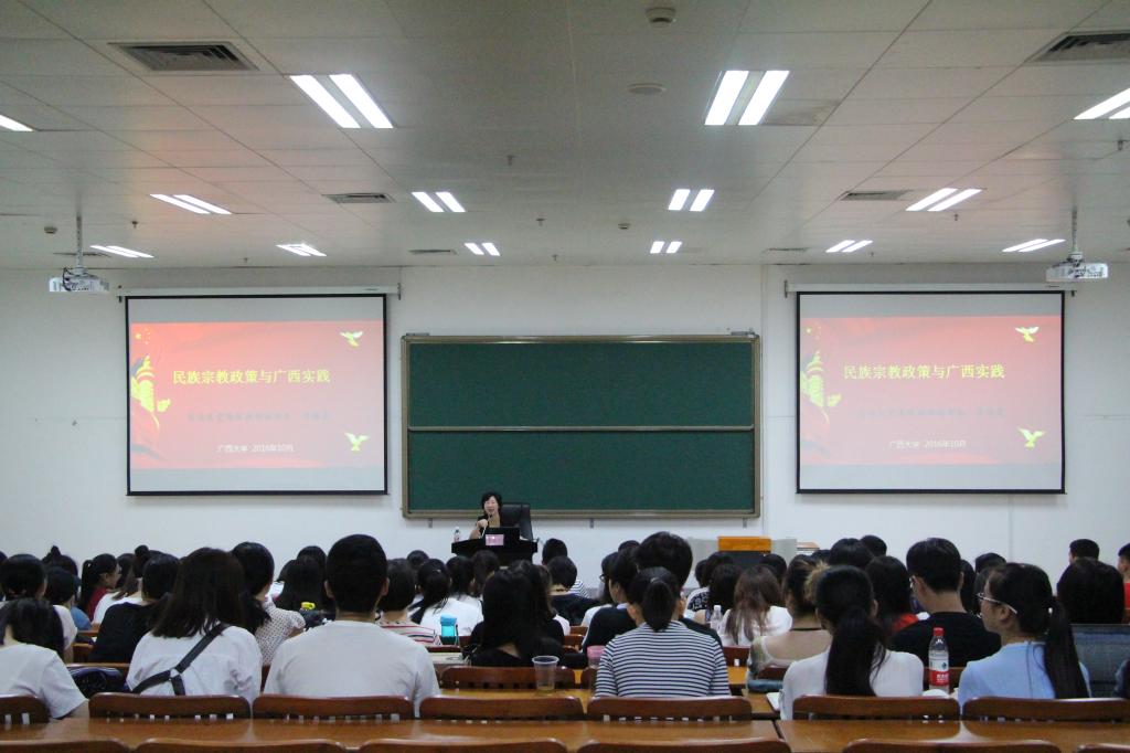10月28日下午,自治区党委统战部副部长李银霞到伟德国际1946新闻传播学院,以“民族宗教政策与广西实践”为主题,为我院学生讲授了一堂深刻的国情教育课,带领同学们学习民族宗教政策,鼓励大家成为一名合格的新闻工作者。